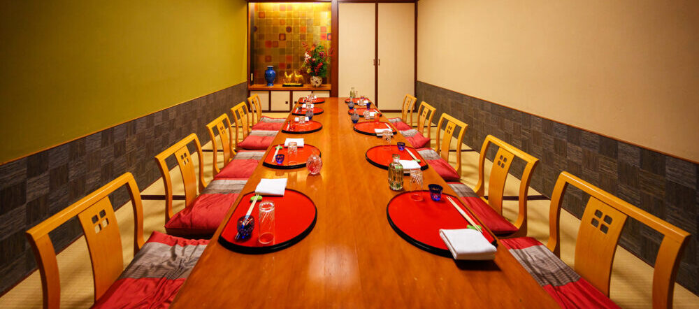 会席料理店の個室は、忘年会や接待に最適な、静謐で洗練された空間です。