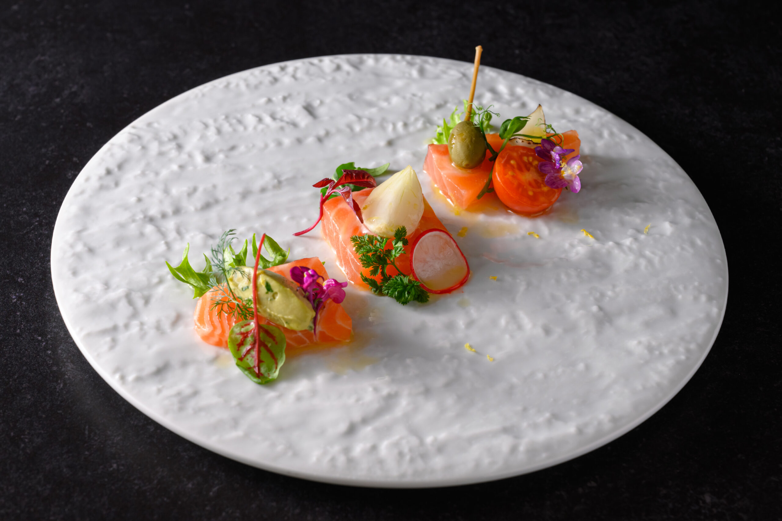 まず、お食事の始まりを彩るのは「Stuzzichini(ストゥッツィキーニ)」です。これは前菜の前に提供する小さな一皿で、イタリア語でおつまみや軽い前菜を意味しており、食前酒と共に楽しむ料理です。フランス料理におけるアミューズ・ブーシュと同じ位置づけで、これから始まる食事への期待を高めてくれます。