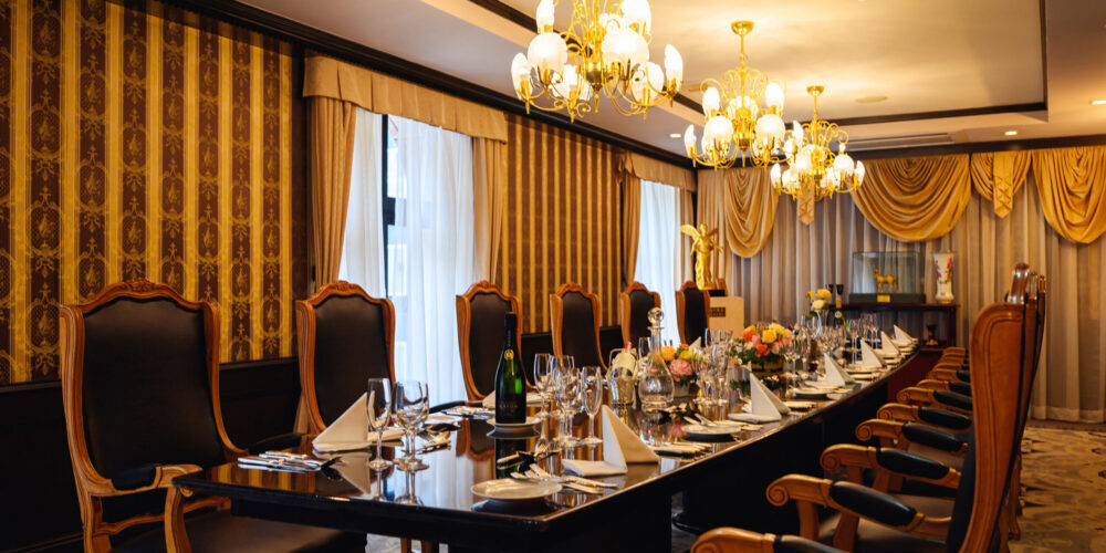 ビジネスの世界では、節目となる瞬間や大切な方々をお迎えする場に、上質な空間と確かな料理が求められます。企業の歴史に刻まれる重要な日、長年お世話になった方々への感謝を伝える場、そして未来への新たな一歩を踏み出す瞬間。こうした特別な時間には、参加される皆様の心に残る、格調高い会場が必要です。