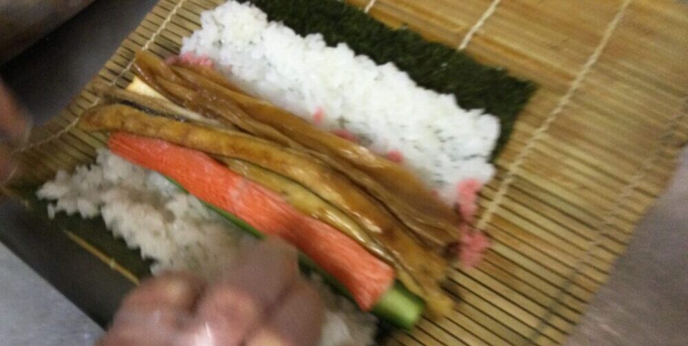穴子、海老、玉子焼、桜でんぷん、かんぴょう、かにかま、きゅうりを贅沢に使った太巻きです。